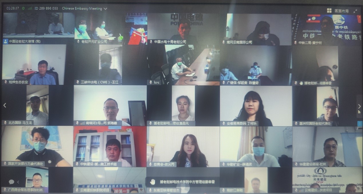 6月2日,中国驻老挝大使馆召开驻老挝中资机构、项目及人员安全工作视频会,会议由使馆经商参赞赵文宇主持,使馆办公室主任杨志强、驻琅勃拉邦总领馆代表以及老挝中国总商会、老中铁路公司、老挝国立大学孔子学院,国家开发银行、中国工商银行、中国银行、中国电建、云南建投等60余家驻老机构、项目负责人参会。