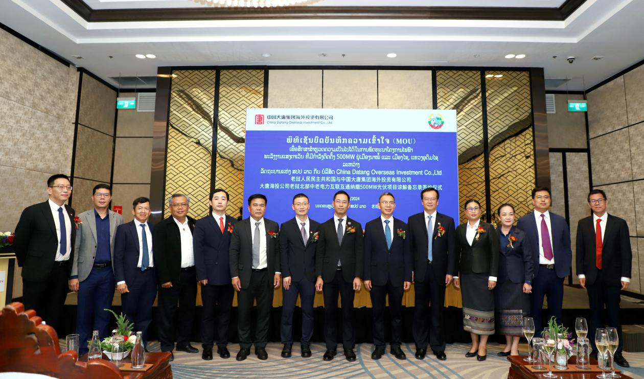 6月20日下午,大唐集团海外投资有限公司和老挝政府关于老挝北部中老电力互联互通纳磨500MW光伏项目谅解备忘录签约仪式在万象市举行。中国驻老挝使馆经商处参赞赵文宇、老挝计划投资部副部长赛亚班迪、能矿部副部长占沙文、大唐集团海外投资有限公司副总经理李德勇出席出席上述仪式。 纳磨光伏项目位于老挝北部乌多姆塞省纳磨县和孟赛县,装机容量为500MW。